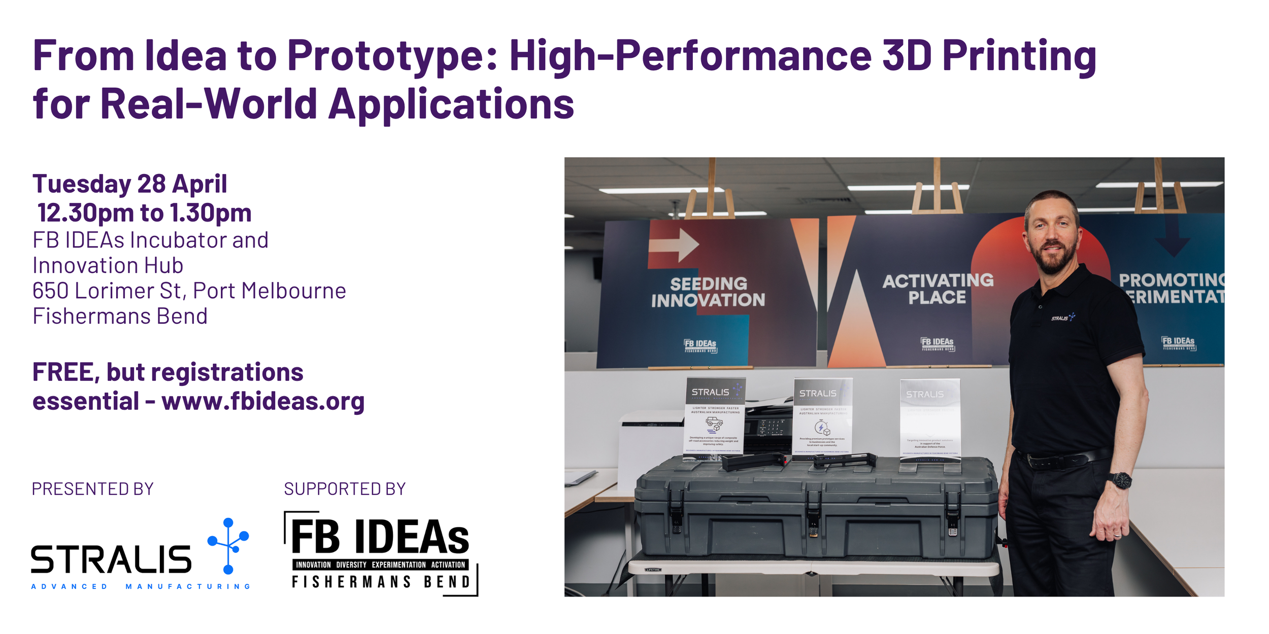 Join us for a FB IDEAs Lunch & Learn with Hub member STRALIS, an advanced manufacturing and prototyping capability based in Fishermans Bend. Stralis helps founders, engineers and innovators move from idea to physical product — rapidly — using high-performance 3D print manufacturing.